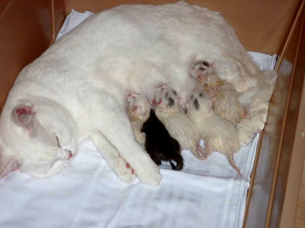 Hier ist Yässy mit ihrem zweiten Wurf. Sie ist eine super gute Mutter. Ihre beiden Würfe waren wirklich gut gelungen.