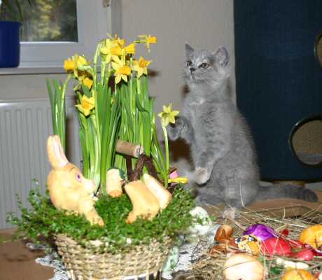 Unser O-Wurf ist am 08.01.2004 geboren. Es ist Kimberlys erster Wurf. Sie hat ihre Babys ohne Komplikationen geboren. Ein propperes blaucreme Mädchen und ein dicker blauer Kater. Da sie in der Trächtigkeit nicht besonders dick gewesen ist, war es für uns nicht verwunderlich, das sie nur zwei Kitten bekommen hat. Aber was für Kitten. Auf ihre Entwicklung darf man gespannt sein. Sie ist eine fürsorglich Mutter und die Beiden sind inzwischen schon richtig kugelrund! Jetzt endecken OWEN und OXANA ihre Umwelt. Und bald hält sie nichts mehr in ihre Wurfkiste.
